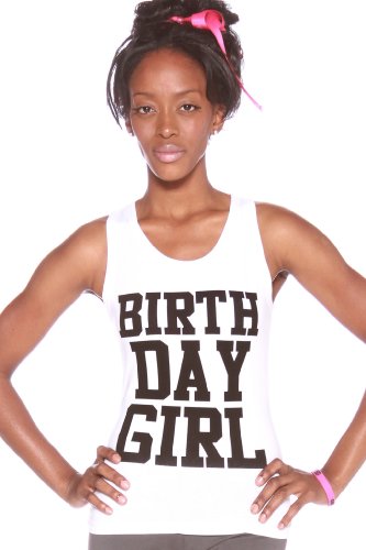 The ultimate statement tank! This show stopping tank gives you so many options! Dress it up to paint the town red with your girls or dress it down to lounge at home, go to class, or add a little "pow" to your everyday! Layer it as a tease or bare it for the full effect. Soft stretch cotton Bold BIRTHDAY GIRL Lettering in the Front Flattering Fit Five Awesome Colors Items run small and are form-fitting. Please pay close attention to the product's measurements in inches before purchasing. You may have to purchase a size up for the perfect fit.