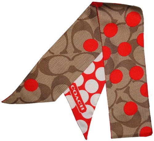 Coach Park Signature Dot Ponytail / Neck Scarf Double Sided Khaki/Orange
