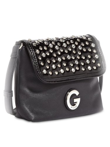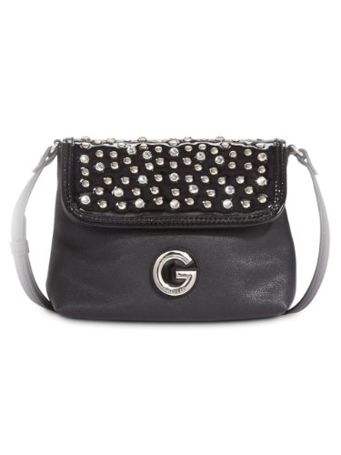 Tons of studs, plenty of rhinestones and a little patent shine-what better way to amp up your after-dark look? This just-big-enough cross-body is just right for stashing on-the-go essentials. Faux-leather exterior with patent trim and stud and rhinestone detail. Silver-tone hardware. Front logo plaque. Fold-over flap with snap closure. Interior zipper pocket Adjustable cross-body strap with 23" drop. Polka-dot lining. 7"W x 6"H x 2"D Women's > Handbags > Crossbody