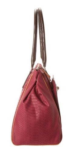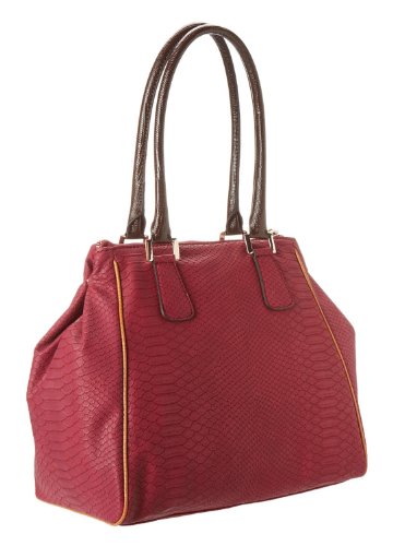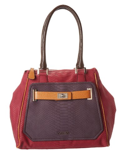 This fashion forward GUESS Fryda large satchel bag is one of the seasons hottest styles. Shiny gold-tone hardware with a textured snakeskin-embossed exterior.