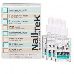 NailTek 10-Speed Polish Drying Drops are all about acceleration. NailTek 10-speed thoroughly dries polish to a smooth, hard & shiny finish in 5 - 7 minutes. Applied over polish it prevents polish from smudging or scratching while polish is drying, in less than a minute, your nails are dried to the touch so that you can put on your shoes and run out the door, with no smudging! Never greasy or filmy, NailTek 10-speed also conditions your cuticles and extends the wearability of nail polish. A great buy for the girl on the run, NailTek 10-Speed keeps your hands looking great wherever- and whenever- life takes you.