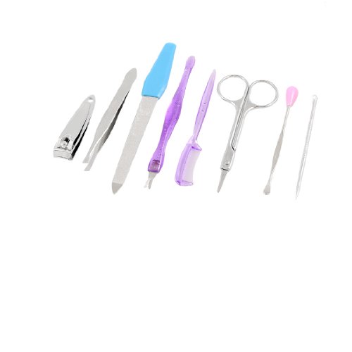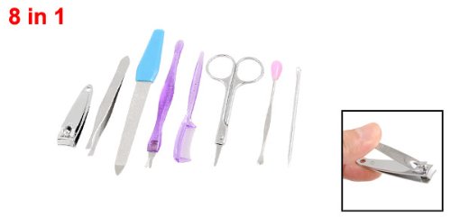 - Package Content : 1 x Eyebrow Tweezers, 1 x Eyebrow Comb,1 x Eyebrow Scissors, 1 x Nail Scissors,1 x Nial File,1 x Earpick, 1 x Cuticle Trimmer,1 x Cuticle Pusher