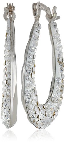 Sterling Silver Oval Crystal Hoop Earrings