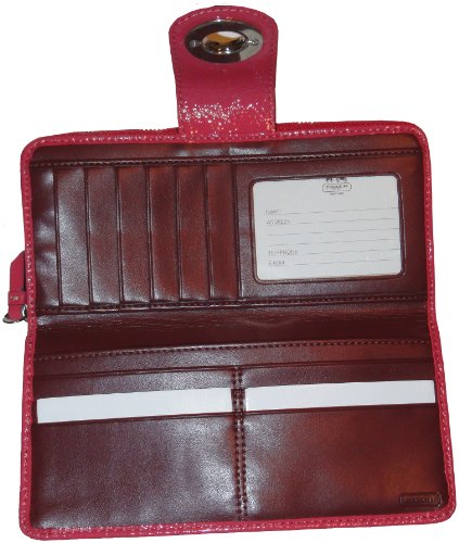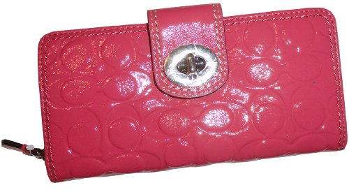 Women's Coach Turnlock Embossed Patent Leather Accordian Zip Around Wallet Rose