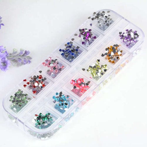 Yesurprise 3000 Pcs Plastic Nail Art Heart Hollow Set Slices 12 Colors